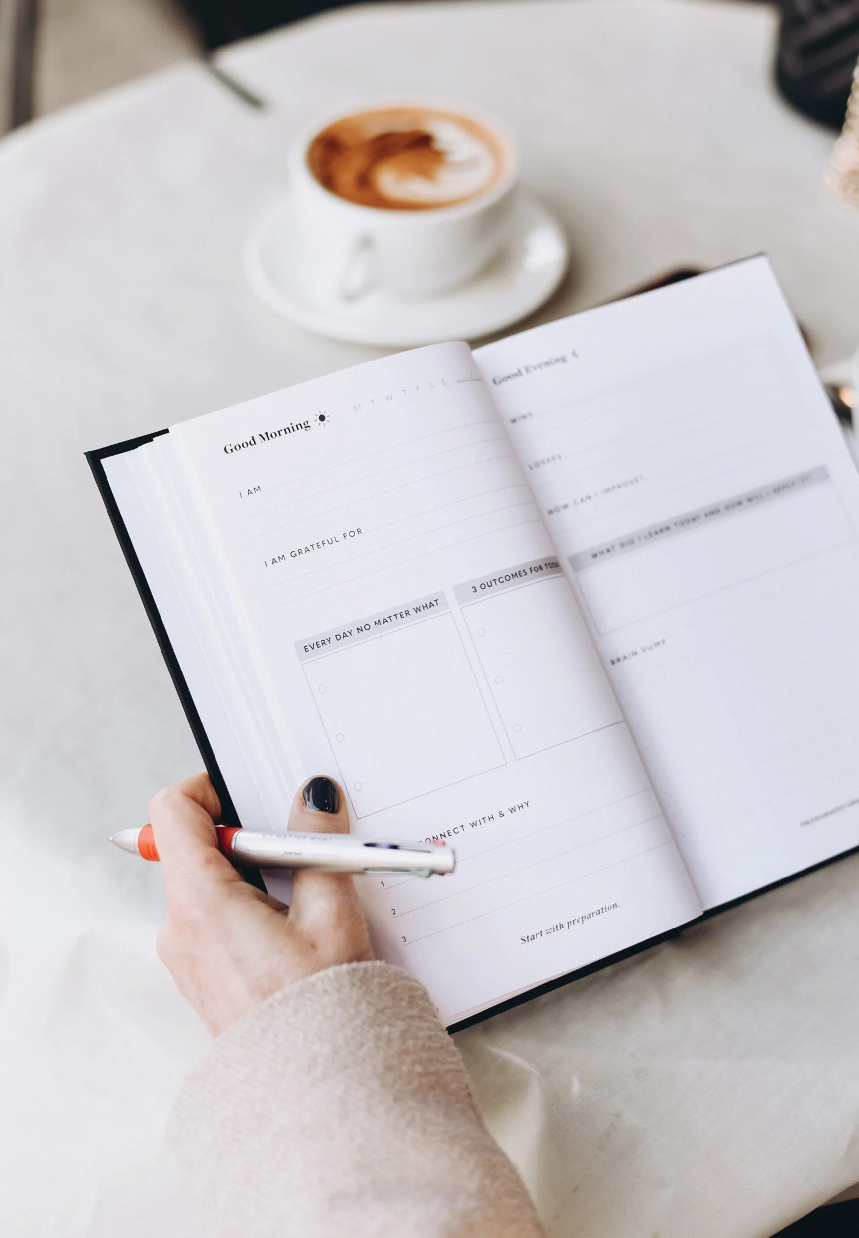 The No Matter What Journal, created by real estate coach Janet Miller, is an undated quarterly goals journal tailored for entrepreneurs. It features dedicated pages for quarterly planning, outlining short- and long-term goals, weekly and daily planning, a monthly calendar, and an end-of-quarter review. It’s flexible yet detail oriented, incorporating best-practices for setting intentions and achieving goals. Alongside the layout design of this journal, I also developed the brand identity for No Matter What including marketing materials and social media templates.